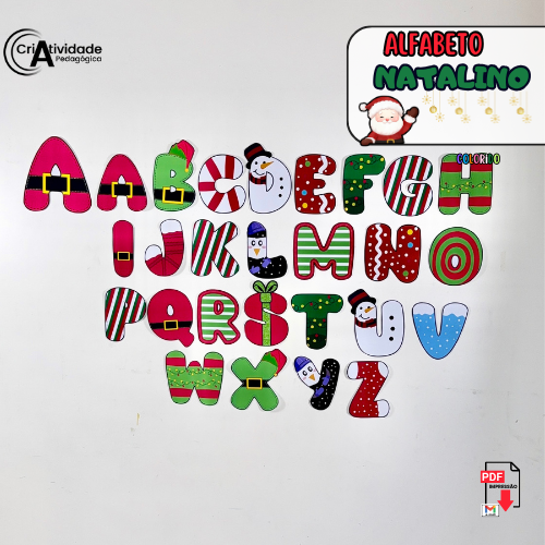 O Alfabeto Natalino é um recurso digital em PDF, pronto para aplicar e fácil de usar. Cada letra vem com detalhes do Natal, tornando o aprendizado mais lúdico e encantador. Em versão colorida, ideal para murais e atividades escolares.