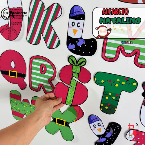 O Alfabeto Natalino é um recurso digital em PDF, pronto para aplicar e muito fácil de usar em sala de aula. Cada letra do alfabeto vem decorada com elementos temáticos do Natal, como gorros do Papai Noel, sinos, árvores, presentes, estrelas e bengalas doces, criando um visual encantador e cheio de magia. Ideal para atividades de alfabetização, decoração de murais e projetos natalinos, torna o aprendizado das letras mais lúdico e envolvente. Disponível em versão colorida, o arquivo pode ser impresso em diferentes tamanhos para diversas aplicações. Produzido com alta qualidade visual e pedagógica, é um recurso criativo que une aprendizado, arte e espírito natalino. Perfeito para transformar a sala de aula em um ambiente festivo e educativo.