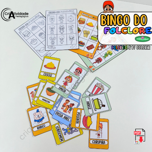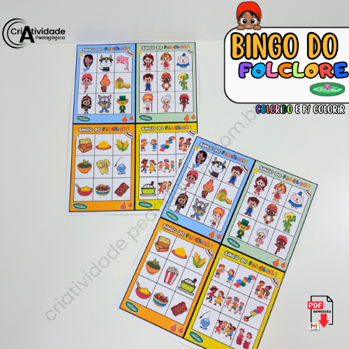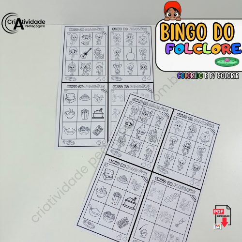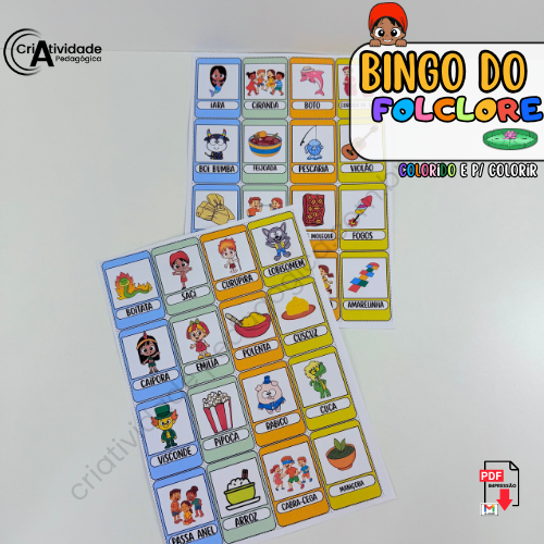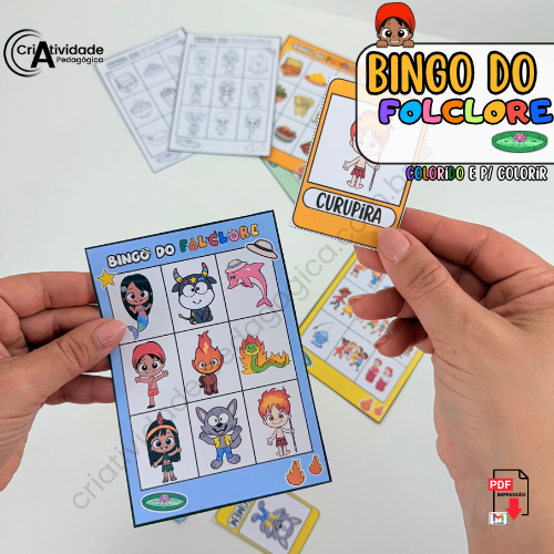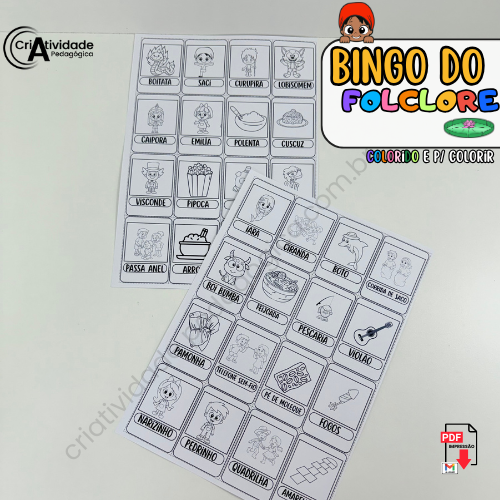O Bingo do Folclore é mais do que um simples jogo, é uma maneira criativa de mergulhar no universo mágico da cultura brasileira! Combinando elementos do Sítio do Pica-Pau Amarelo, personagens do folclore como o Saci e a Iara, além de comidas típicas (como pamonha e bolo de milho), danças (como o frevo e o forró) e brincadeiras tradicionais (pula corda, amarelinha e muito mais), o bingo transforma aprendizado em diversão. As cartelas são repletas de imagens que tornam o jogo dinâmico e adaptável para faixas etárias variadas. Excelente como atividade pedagógica ou recreativa, o bingo incentiva a socialização, o conhecimento cultural e, claro, garante bons momentos de alegria entre todos. Uma experiência inesquecível que celebra o melhor do Brasil!