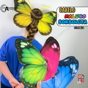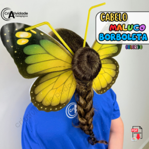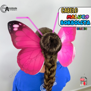 O Cabelo Maluco Borboleta é um recurso digital em PDF, pronto para aplicar e fácil de usar. Com asas delicadas, cria um visual criativo e encantador para as crianças. Disponível em colorido e para colorir, é ideal para professores e pais.