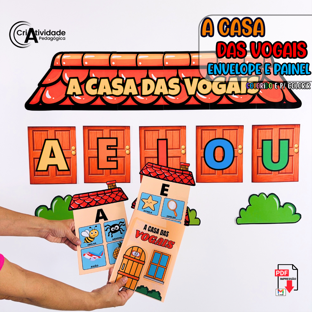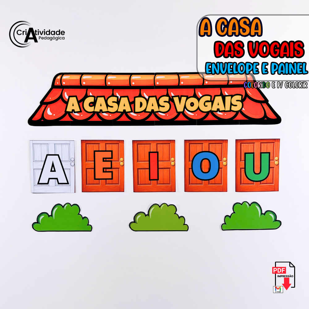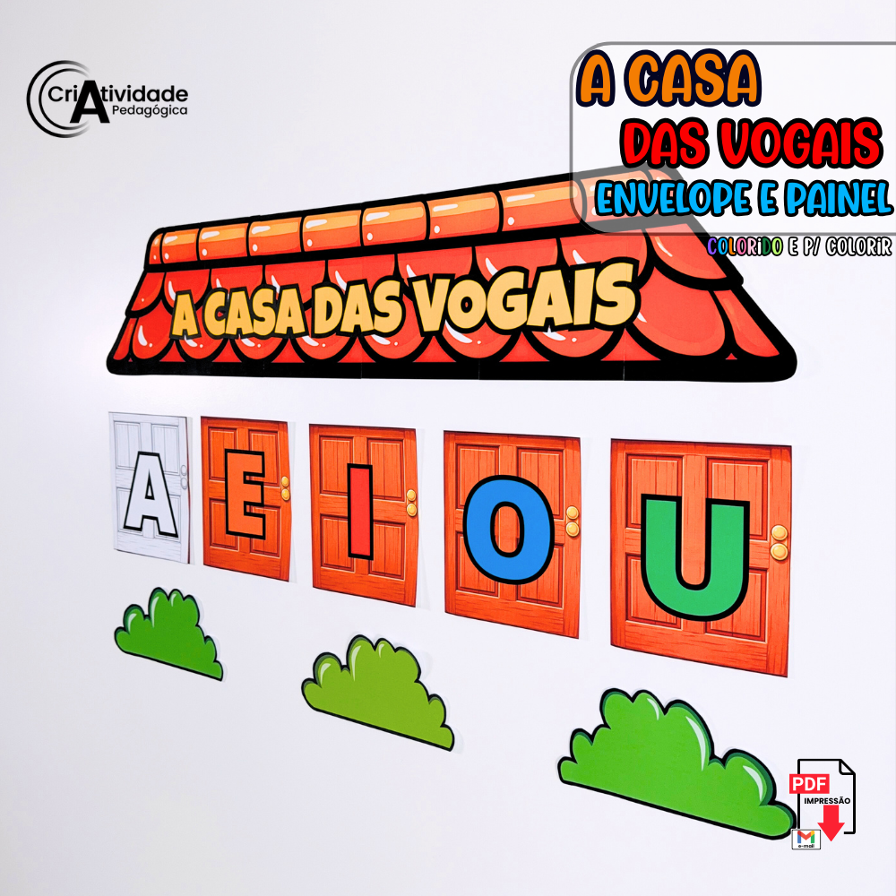 A Casa das Vogais – Envelope e Painel é um recurso digital em PDF, pronto para aplicar e fácil de usar. Apresenta as vogais de forma lúdica, com painel e envelopes interativos. Em versão colorida, é ideal para alfabetização inicial.