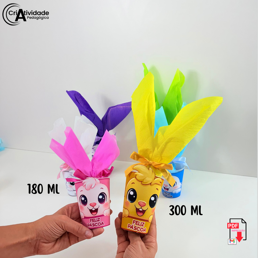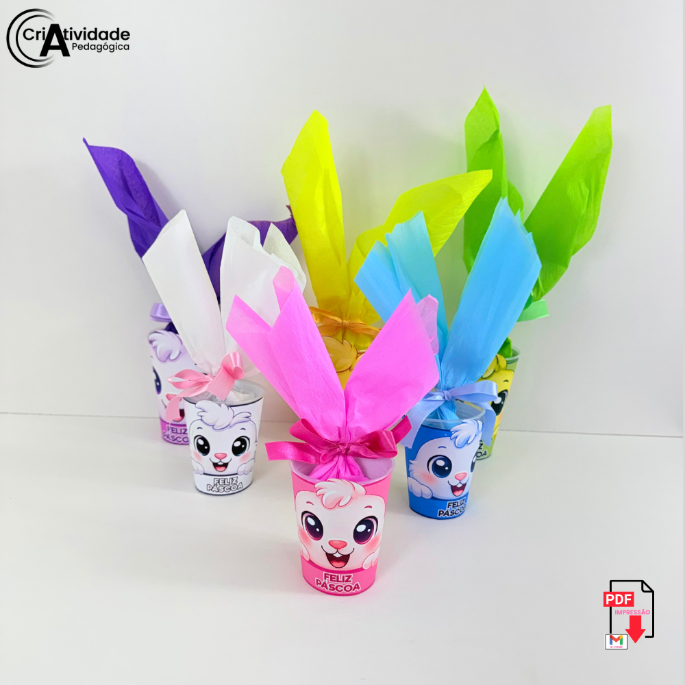O Copo Colorida Páscoa é um recurso digital em PDF, pronto para aplicar e muito fácil de montar em atividades e lembrancinhas de Páscoa. A proposta transforma um copo em um coelhinho temático, criando uma lembrança divertida e encantadora para as crianças. Para deixar o visual ainda mais especial, as orelhas do coelho são feitas com papel crepom, utilizando material alternativo simples e criativo. Ideal para colocar guloseimas e tornar o momento ainda mais alegre. Perfeito para escolas, projetos de Páscoa e celebrações temáticas, une criatividade e praticidade. O material já vem organizado para facilitar a montagem e aplicação. Disponível em versão colorida, garantindo um resultado bonito e atrativo.