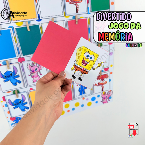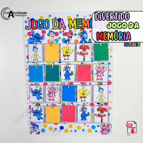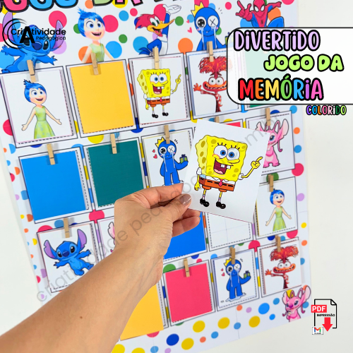 O Divertido Jogo da Memória é um recurso digital em PDF, pronto para aplicar e fácil de usar. Em painel interativo, os personagens são conectados com mini grampo, tornando a brincadeira dinâmica. Disponível em colorido e para colorir, estimula atenção e concentração.