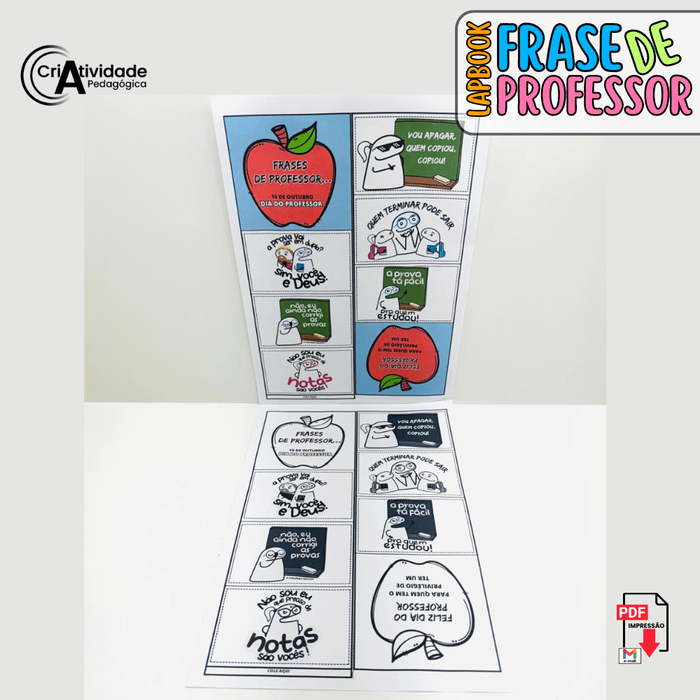 Traga diversão e reflexão para a sala de aula com “Frases De Professor Colorido e Para Colorir”! Este arquivo PDF único captura o humor e a sabedoria do dia a dia escolar, apresentando frases engraçadas típicas do ambiente educacional. Disponível em versões coloridas e para colorir, esta atividade não só diverte, mas também estimula a compreensão linguística e a criatividade dos alunos. É uma maneira perfeita de quebrar o gelo, iniciar discussões leves e criar momentos de conexão entre educadores e estudantes. Fácil de aplicar, com instruções claras, este recurso transforma momentos cotidianos em oportunidades de aprendizado divertido e memorável. Traga mais sorrisos e cores para o ambiente escolar!