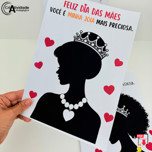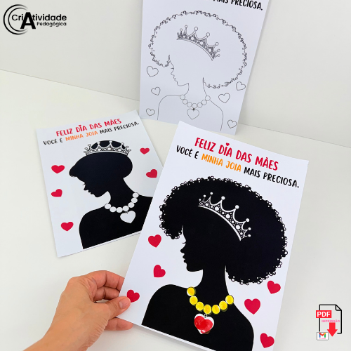 O Mãe Joia Preciosa A4 é um recurso digital em PDF, pronto para aplicar e muito fácil de usar em atividades do Dia das Mães. A proposta convida as crianças a utilizarem carimbo de dedo para formar as pérolas de um colar, tornando a produção única e cheia de significado. O desenho valoriza a figura materna como uma joia rara, reforçando o amor e o carinho presentes no vínculo familiar. Ideal para lembrancinhas, projetos escolares e momentos de homenagem, promove participação ativa e expressão afetiva. A atividade é simples, envolvente e com forte apelo emocional. Disponível em versão colorida e para colorir, adapta-se a diferentes propostas. Produzido com alta qualidade visual e pedagógica, transforma a atividade em uma lembrança especial.