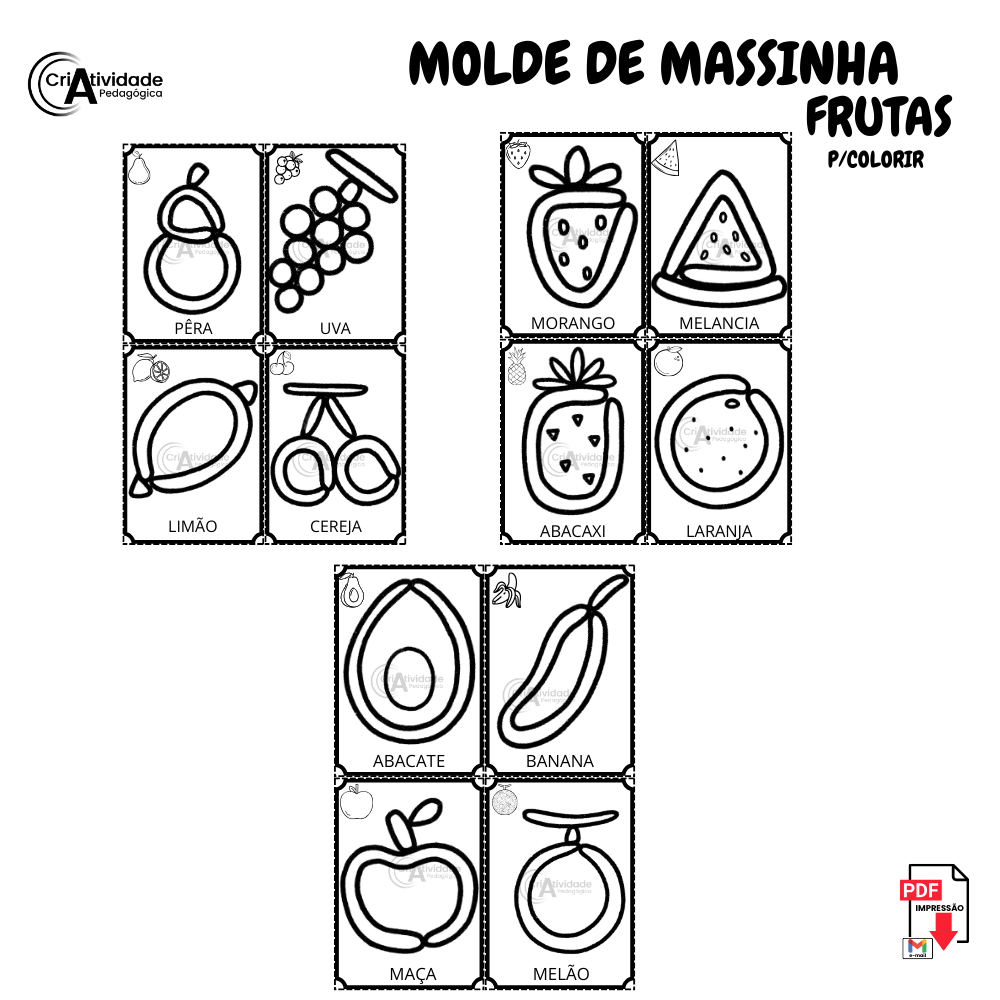 Molde de massinha frutas colorido e para colori
