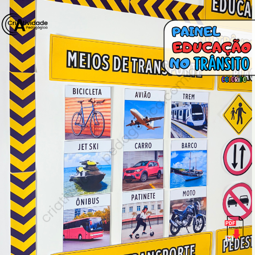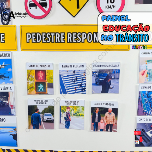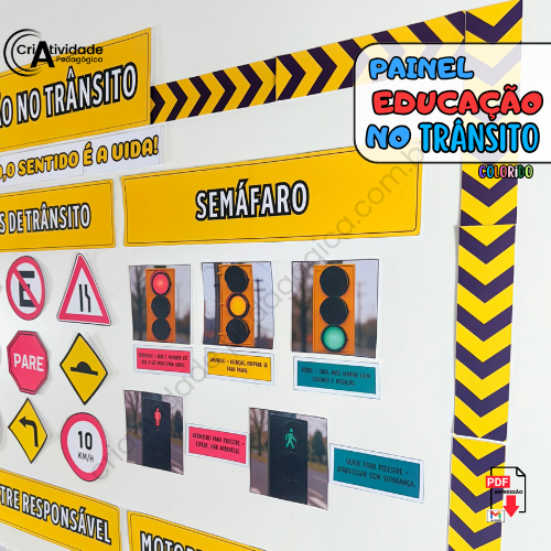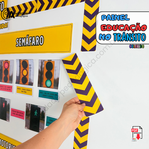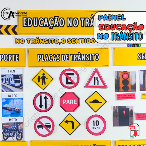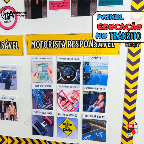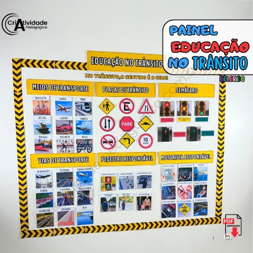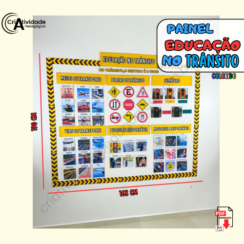 Transforme a Semana do Trânsito em um momento educativo e envolvente com o Painel Educação no Trânsito! Simulando um ambiente urbano, o painel apresenta regras e normativas de forma visual e clara, com placas de trânsito, faixas de pedestres, semáforos e sinais ilustrativos, todos representados por materiais acessíveis e criativos. Ele é perfeito para ensinar de forma lúdica e prática as principais orientações de segurança no trânsito, como respeitar o semáforo, atravessar na faixa de pedestres e usar o cinto de segurança. Com arte, educação e diversão, formamos cidadãos mais conscientes e responsáveis!