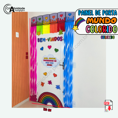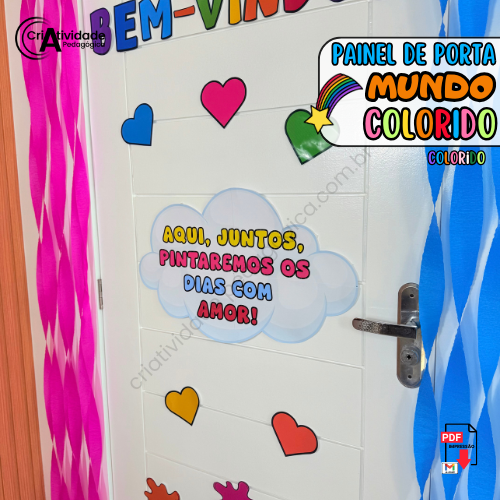Receba os alunos com alegria e entusiasmo com o Painel de Porta Mundo Colorido! Perfeito para dar boas-vindas no retorno das férias, este painel combina cores vibrantes e uma mensagem inspiradora: “Aqui, juntos, pintaremos os dias com amor!”. Crie um espaço acolhedor que desperte a criatividade e o sentimento de pertencimento, mostrando que a escola é um lugar onde cada dia será uma nova obra-prima. Ideal para transformar o ambiente escolar em um mundo colorido de boas energias e afeto!