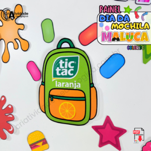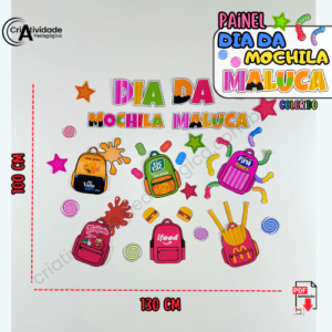 O Painel Mochila Maluca é um recurso digital em PDF, pronto para aplicar e fácil de montar. Em versão colorida, decora o ambiente escolar no Dia da Mochila Maluca com alegria e criatividade. Ideal para professores que desejam enriquecer a data.