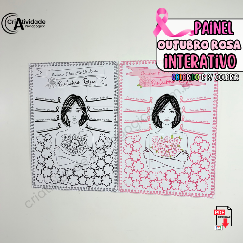 O Painel Outubro Rosa Interativo é um recurso digital em PDF, pronto para aplicar e fácil de usar em sala de aula ou em projetos coletivos. Composto por 9 folhas, o painel está disponível nas opções colorido e para colorir, permitindo maior versatilidade na aplicação. A proposta é que as mulheres deixem sua digital marcada com guache, formando o miolo das flores e dando vida a um jardim de força, amor e cumplicidade. Essa atividade promove união, valorização e conscientização de forma lúdica e significativa. Sua montagem é prática, possibilitando criar um painel de impacto visual e emocional. Produzido com alta qualidade visual e pedagógica, é ideal para envolver a comunidade escolar em campanhas de sensibilização. Um recurso marcante que transforma o ambiente em um espaço de acolhimento e esperança.