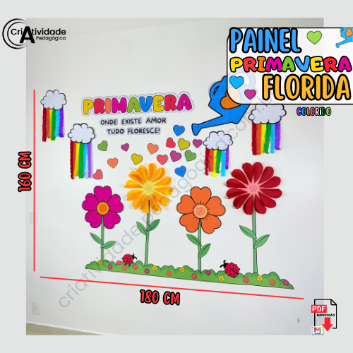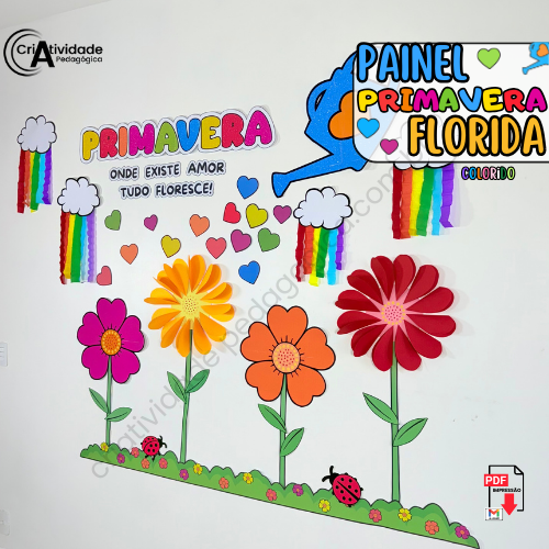 O Painel Primavera Florescer transforma o ambiente em um verdadeiro jardim cheio de cores e mensagens positivas! O painel traz a frase inspiradora: “Primavera, onde existe amor, tudo floresce”, destacando a essência dessa linda estação. Com o uso de materiais alternativos, como papel crepom para criar um arco-íris vibrante e papel duplex para confeccionar pétalas de flores coloridas, a decoração se torna ainda mais acessível e criativa. Uma atividade colaborativa que permite que crianças ou turmas participem, tornando o painel único com suas contribuições. Perfeito para escolas, espaços educativos e eventos temáticos, esse painel destaca o amor pela arte e pela natureza. Com flores e cores, a primavera ganha vida onde existe amor! 🌈🌸🌳