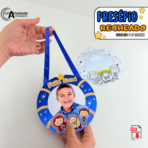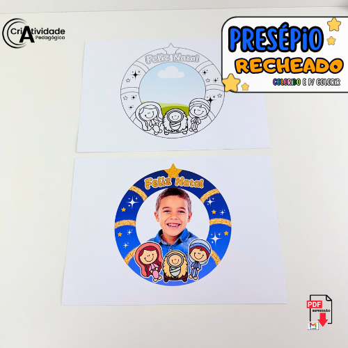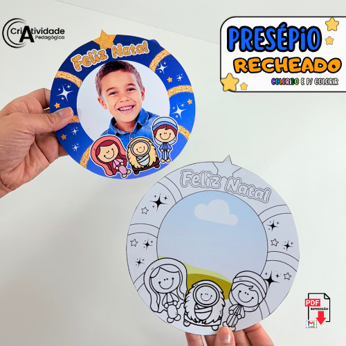O Presépio Recheado é um recurso digital em PDF, pronto para aplicar e muito fácil de usar em sala de aula ou eventos escolares. Essa lembrancinha encantadora permite rechear um prato com doces e utilizar a imagem do presépio como tampa decorativa, criando um presente simbólico e especial para o Natal. O diferencial está na possibilidade de inserir a foto da criança, tornando o material personalizado e ainda mais significativo. Ideal para festas natalinas, encerramentos e atividades religiosas, o arquivo está disponível em versão colorida, pronto para impressão e montagem. Produzido com alta qualidade visual e criativa, é um recurso que une fé, ternura e ludicidade, tornando o aprendizado e a celebração ainda mais marcantes