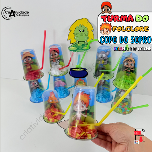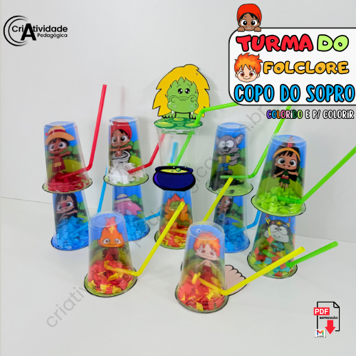 Com o Turma do Folclore – Copo do Sopro, as crianças mergulham no universo das lendas brasileiras de forma lúdica e divertida! O recurso traz 12 diferentes lendas, como Saci, Curupira, Mula Sem Cabeça e outras, todas em formato de copo do sopro, disponível nas versões colorida e para colorir. Criativo e interativo, o copo do sopro estimula a coordenação motora e reforça o aprendizado sobre o folclore nacional. Uma proposta dinâmica que une diversão, cultura e educação! 🎨🇧🇷🌟