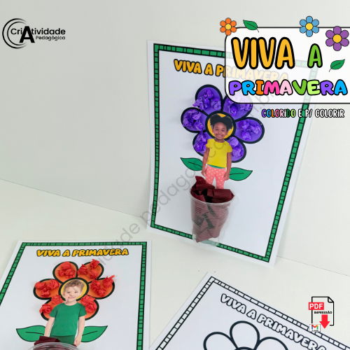 Com a atividade “Viva a Primavera”, cada criança tem a chance de brilhar em uma lembrança criativa e personalizada! Em uma folha A4, será criado o desenho de uma flor, onde o caule é a foto da criança, e as pétalas, folhas e outros detalhes podem ser livremente decorados por ela. Essa atividade encantadora não apenas promove a criatividade, mas também permite reflexões sobre a beleza e o significado da primavera. Ao final, o resultado é uma flor única e especial, perfeita como lembrança ou mesmo como parte de uma decoração coletiva da classe. Seja na escola ou em casa, essa proposta traz a alegria e o colorido da estação, celebrando a primavera com cores, imaginação e sorrisos!